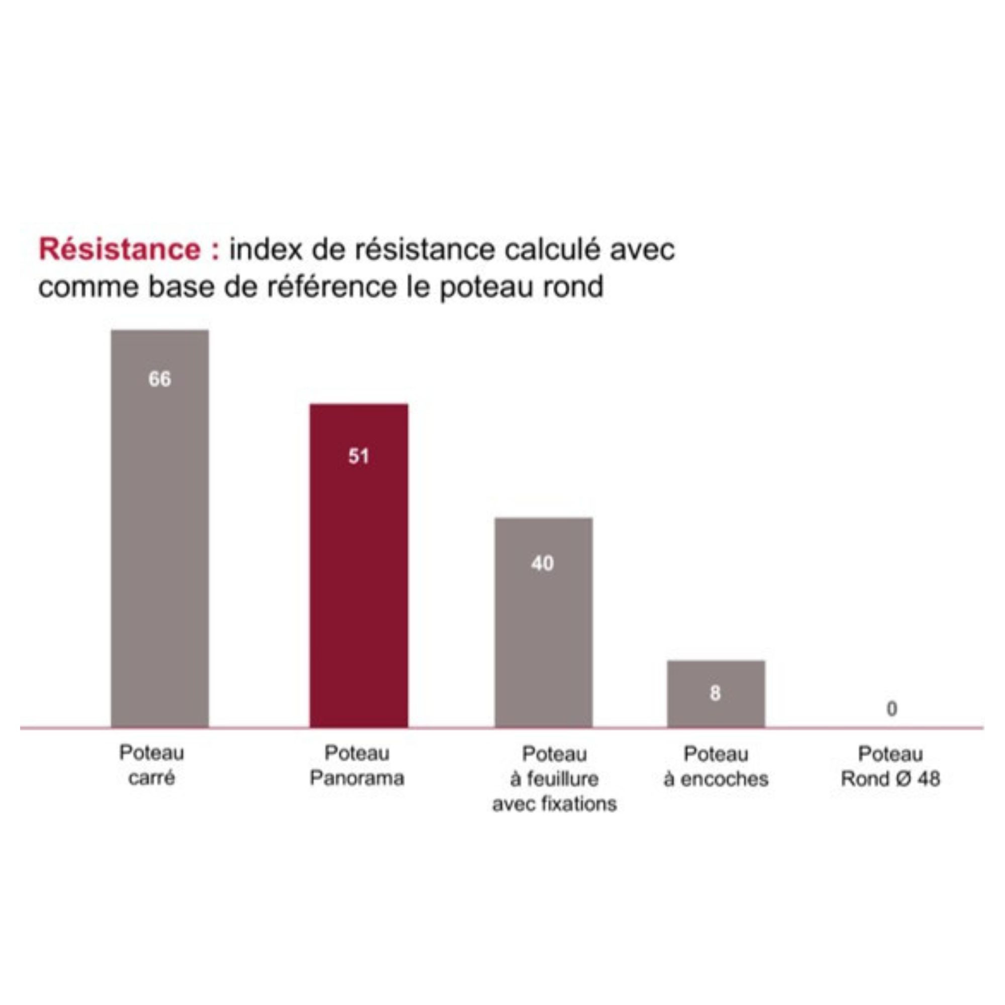Sa structure unique rend Panorama® 50% plus résistant à la traction et à la poussée comparé à la moyenne des poteaux du marché • Sa résistance exceptionnelle vient d’une conception brevetée : • 2 fils en zigzag et 3 fils verticaux assurent une rigidité supérieure • Son revêtement Polyester de qualité est conforme aux hauts standards de Betafence